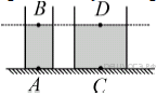 На горизонтальном столе стоят два цилиндрических сосуда — узкий и широкий (см. рисунок). В узкий сосуд налита вода, в широкий — керосин. Уровень жидкости в сосудах одинаковый. Сравните давления p жидкостей в точках A, B, C, D и выберите правильную пару утверждений.