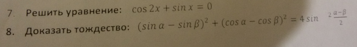 1-2sin²x+sinx=0