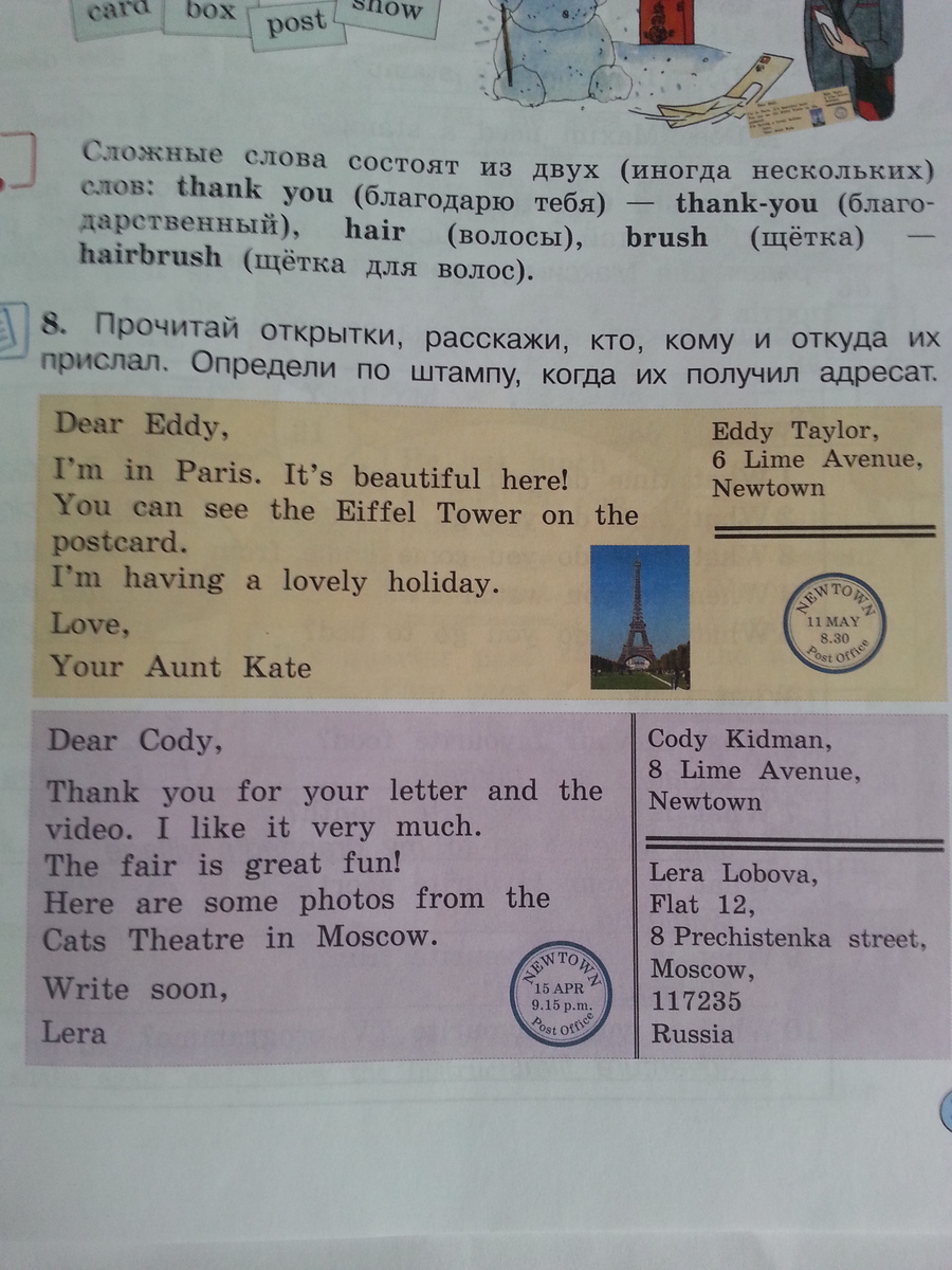 В 1 прислала aunt Kate из Eiffel Town длч eddy Taylor в 8:30 11