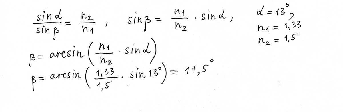 Из воды в стекло луч падает под углом 13 градусов Найти угол преломления