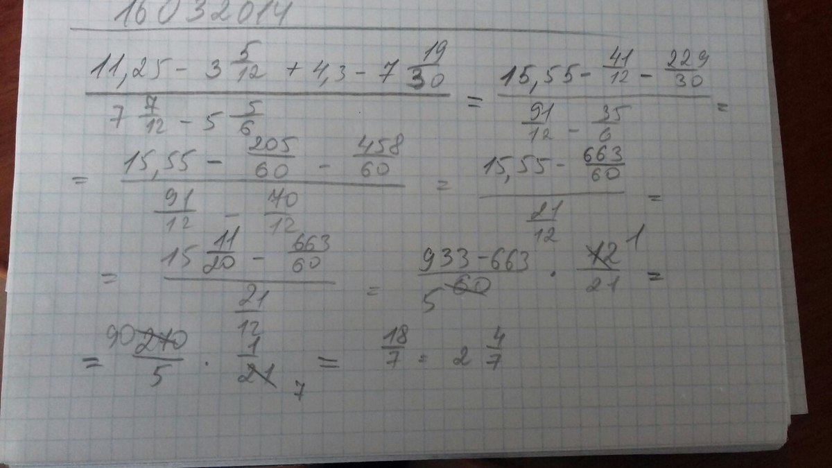 ВЫЧИСЛИТЕ (11,25-3ЦЕЛЫХ 5ТЬ 12ЫХ+4,3-7ЦЕЛЫХ 19ТЬ 30ЫХ):(7ЦЕЛЫХ 7МЬ 12ЫХ-5ЦЕЛЫХ 5ТЬ 6ЫХ)= ТОЛЬКО ПО ДЕЙСТВИЯМ ПЕРВОЕ ДЕЙСТВИЕ И ТАК ДАЛЕЕ......