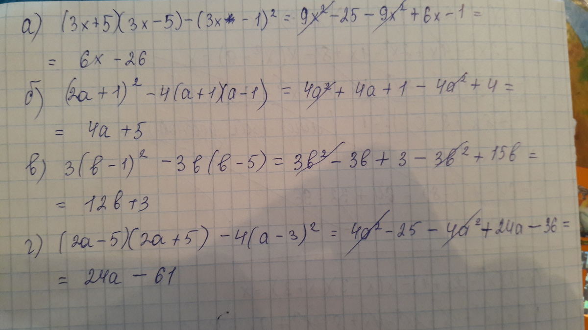 г) (2a-5)(2a+5)-4(a-3)^2