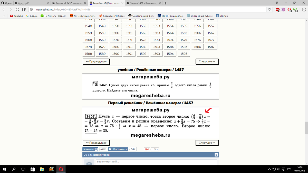 отсюда:у(второе число)=(2/3)х:(4/9)