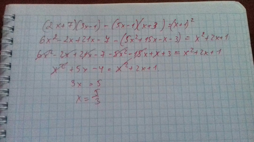 (6х²-7+21х-2х)-(5х²-3-х+15х)=х²+1+2х