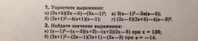 (3х+5)(3х-5)-(3х-1)²=9х²-25-9х²+6х-1=6х-26