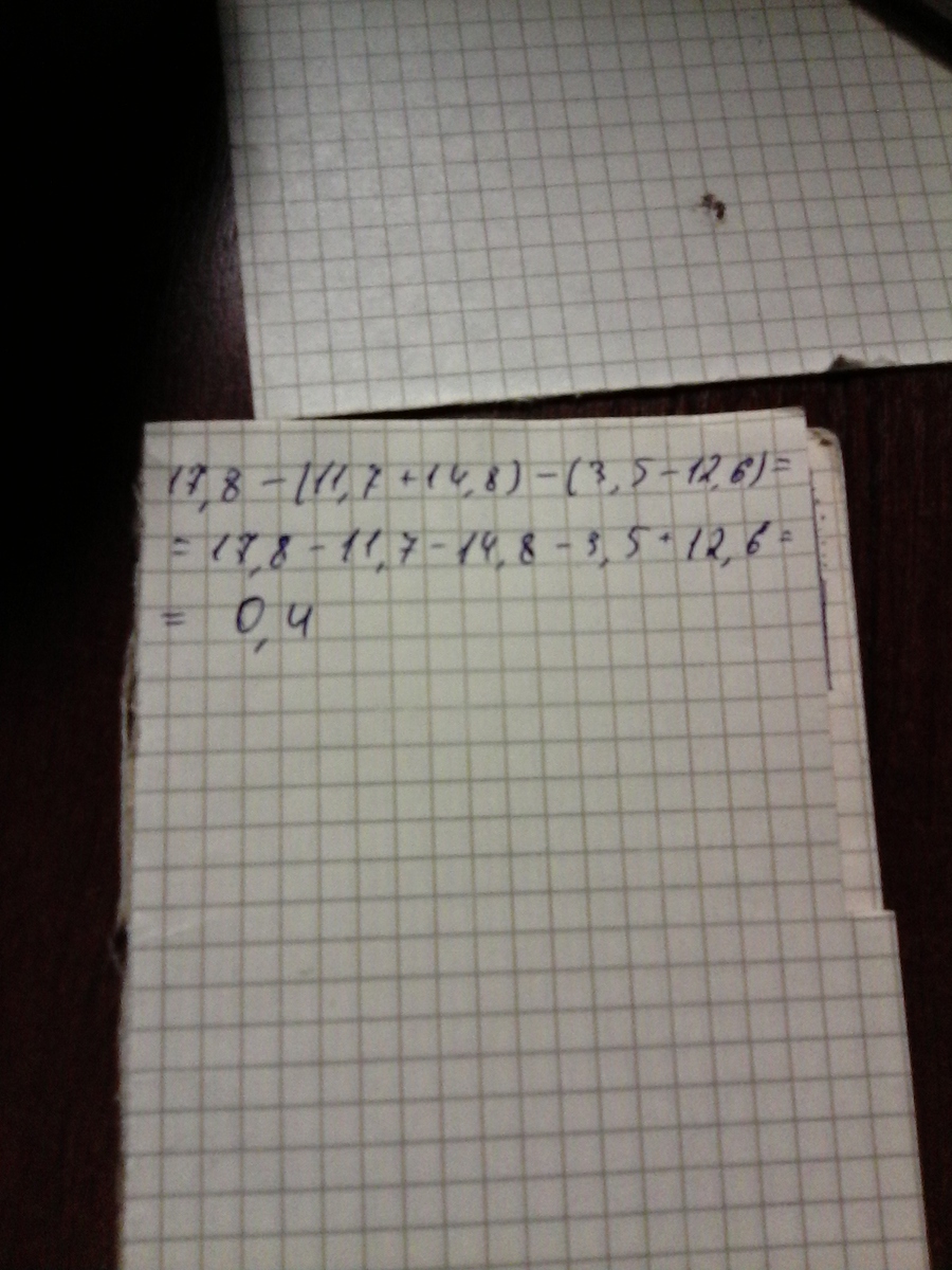 1) 17,8-11,7=6,1 2)6,1-14,8=-8,7 3)-8,7-3,5=-12,2 3)-12,2+12,6=0,4