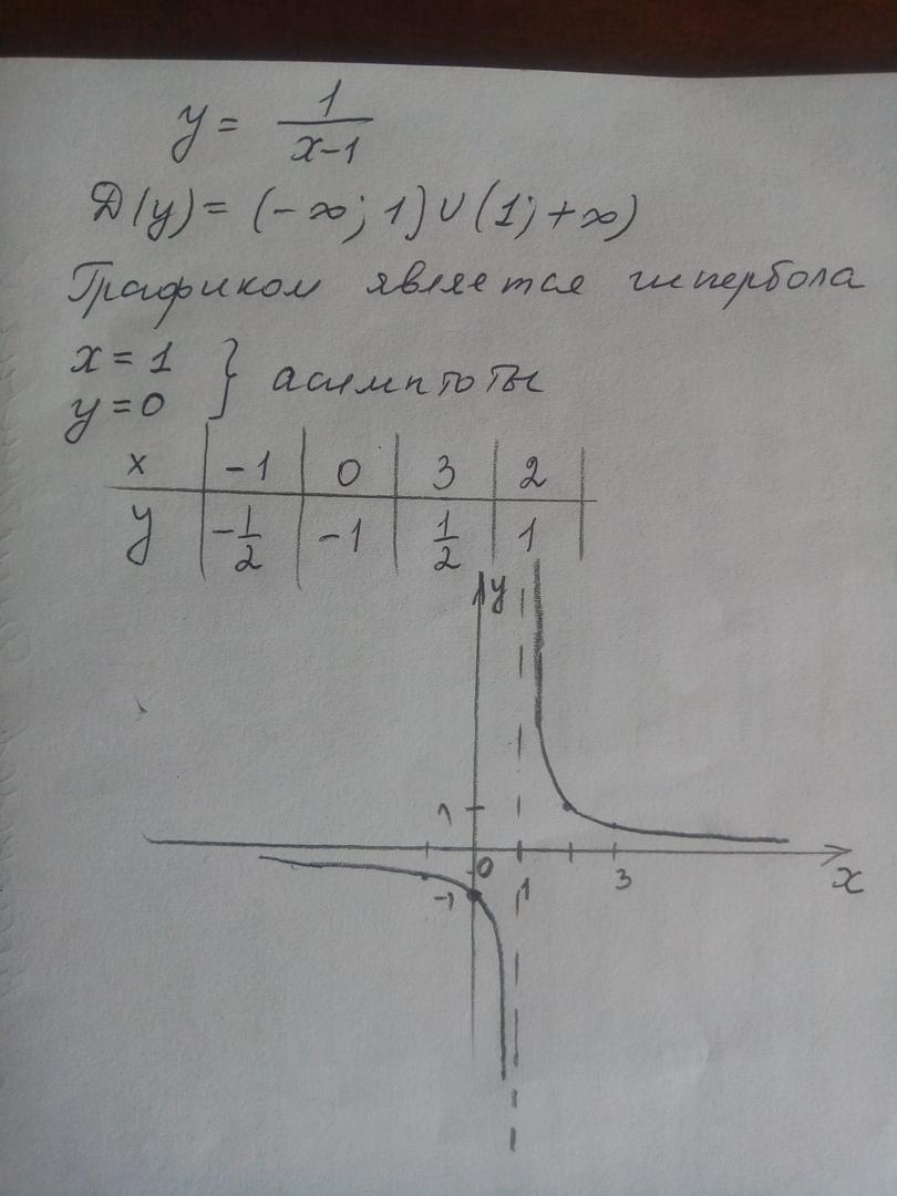 Постройте график функции у=1/ х-1( 1 делить на х-1 )