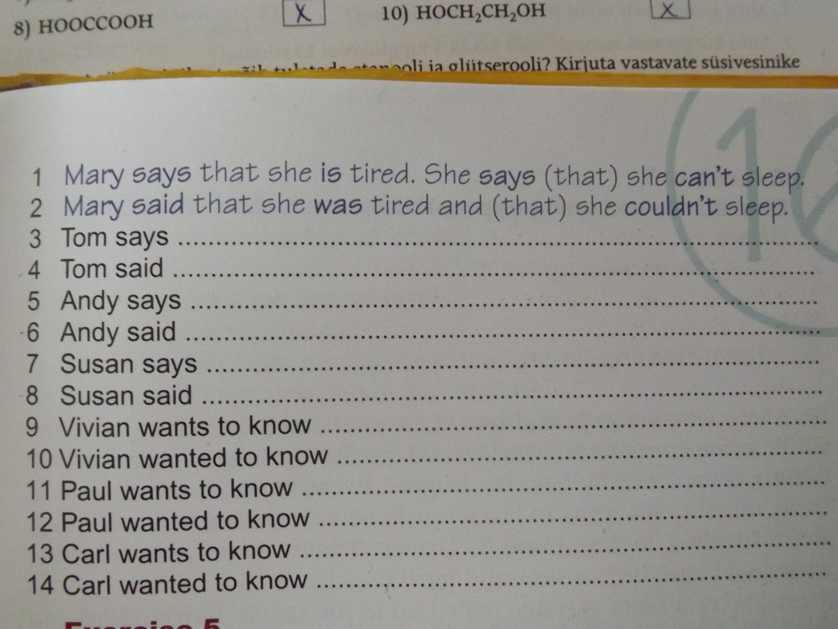 5. Andy says that he has to go to the doctor. He says that he has hurt his back.
