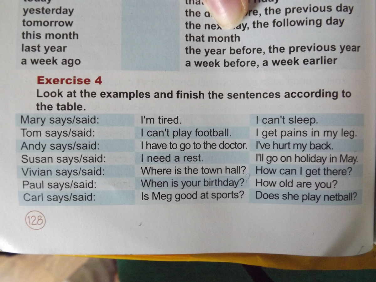 4. Tom said that he couldn't play football, he got pains in his leg.