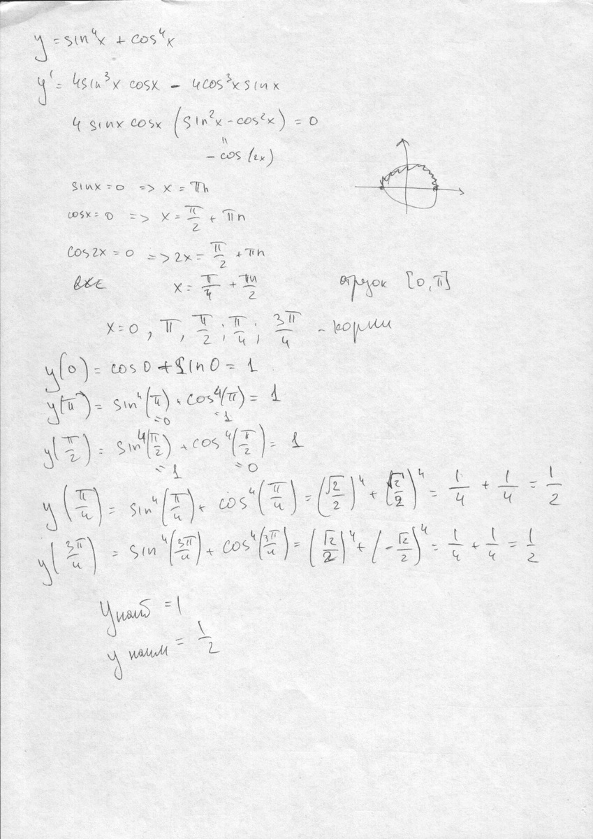 y= sin^4 x + cos^4 x на отрезке [0; пи]