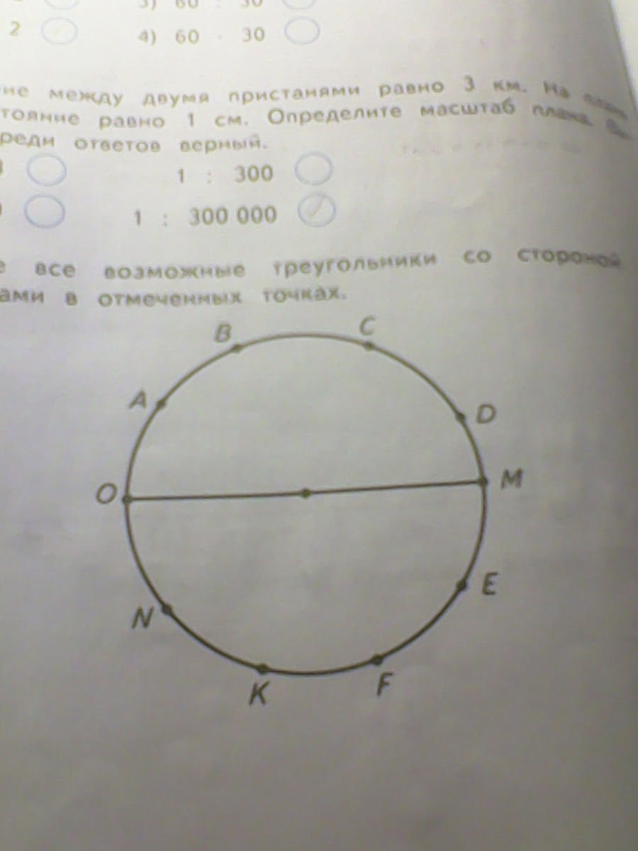 постройте все возможные треугольники со стороной ОМ и вершинами в отмеченных точках.
