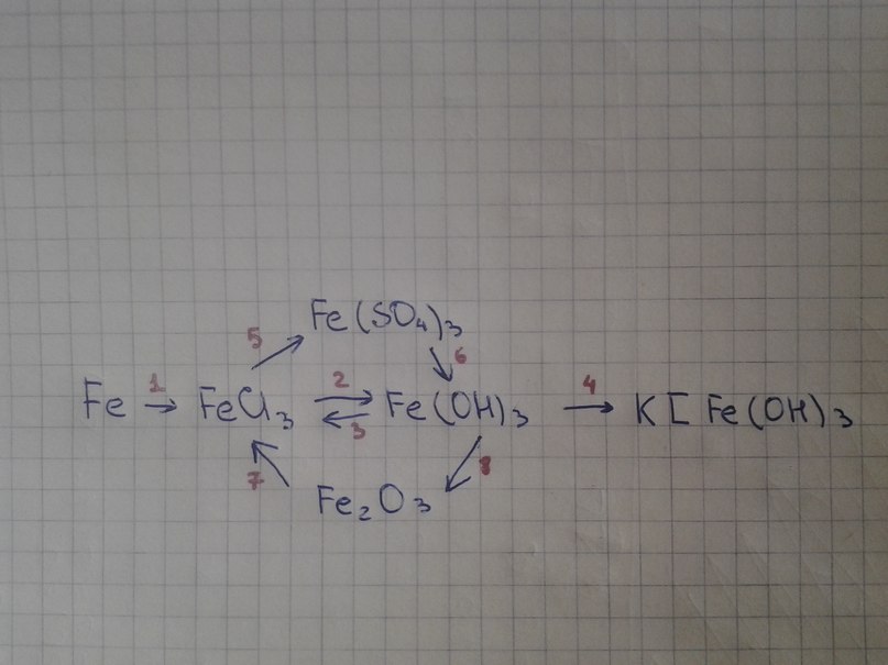 6. Fe2(SO4)3 + 6NaOH = 2Fe(OH)3 (осадок, стрелка вниз) + 3Na2SO4