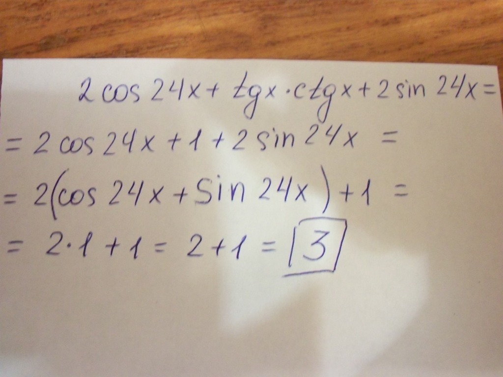Приветик всем помогите кто нибудь срочно решить егэ, упростите выражение: 2cos^24x+tgxctgx+2sin^24x
