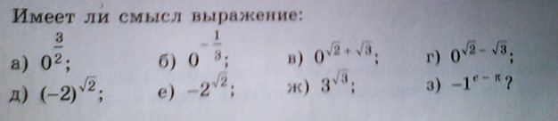д,е,ж - не имеют смысла, т.к степени √2 и √3 числа иррациональные