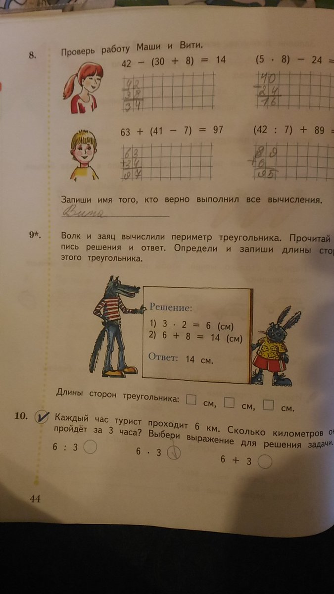 Умножается число 3 , это значит что оно повторяется 2 раза. И потом прибавлено 8. Получается: стороны равны- 3 см, 3 см, и 8 см)