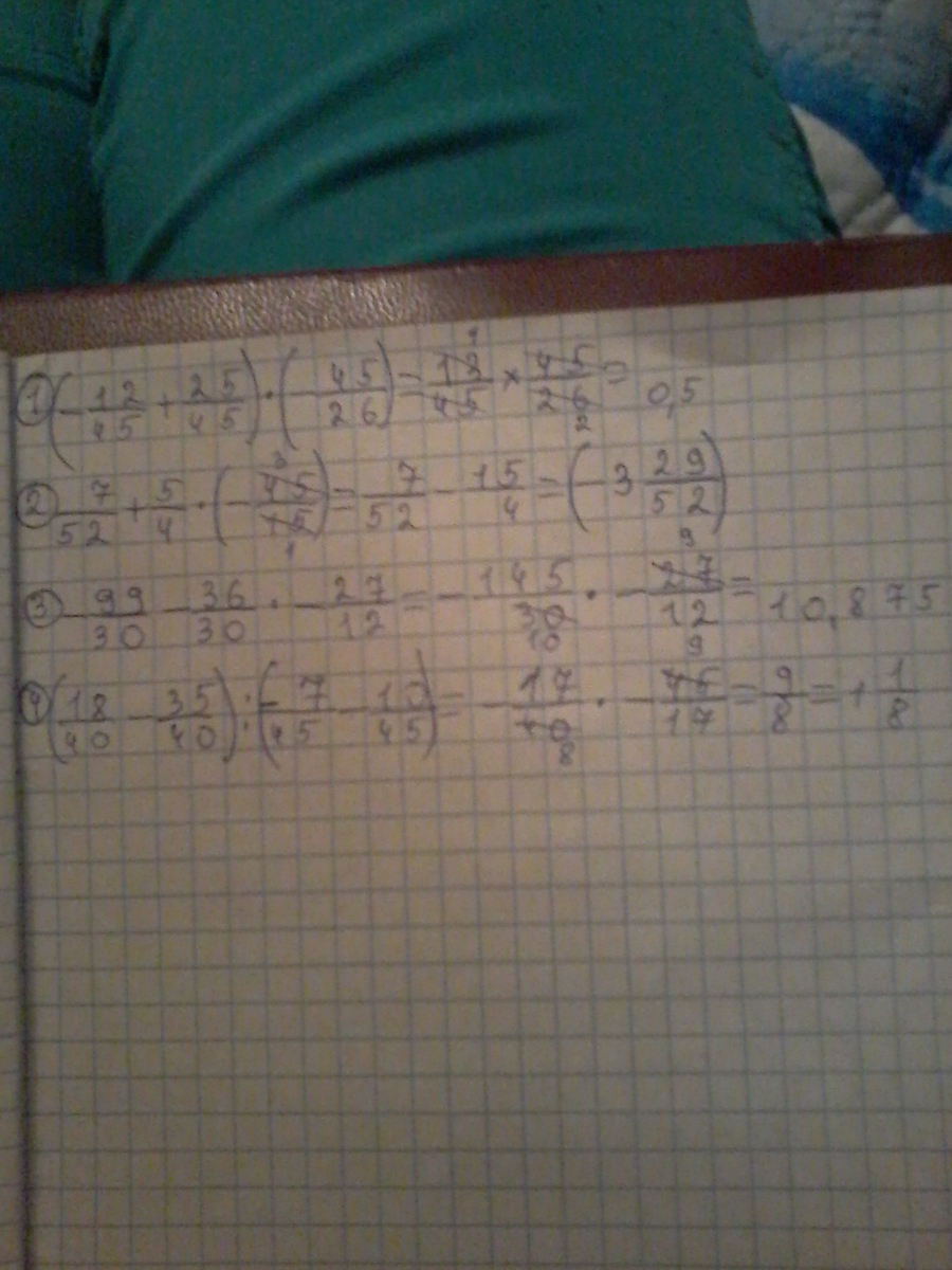 найдите значение выражения 1) (-4/15+5/9):(-26/45) 2) -12:(-2 1/13)+1 1/4:(-15/45) 3) ( -3 3/10-1 8/15):(-1 2/27) 4) (9/20-7/8):(-7/45-2/9