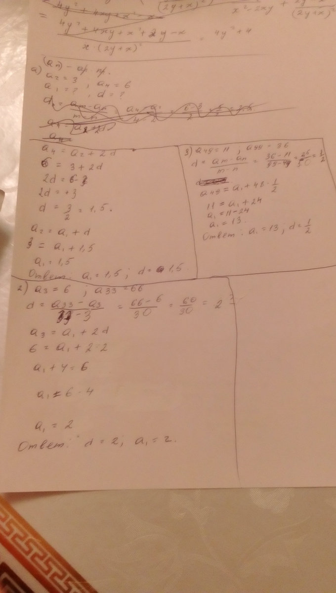 найдите первый член и разность арифметической прогрессии с общим членом an,если известно что:
