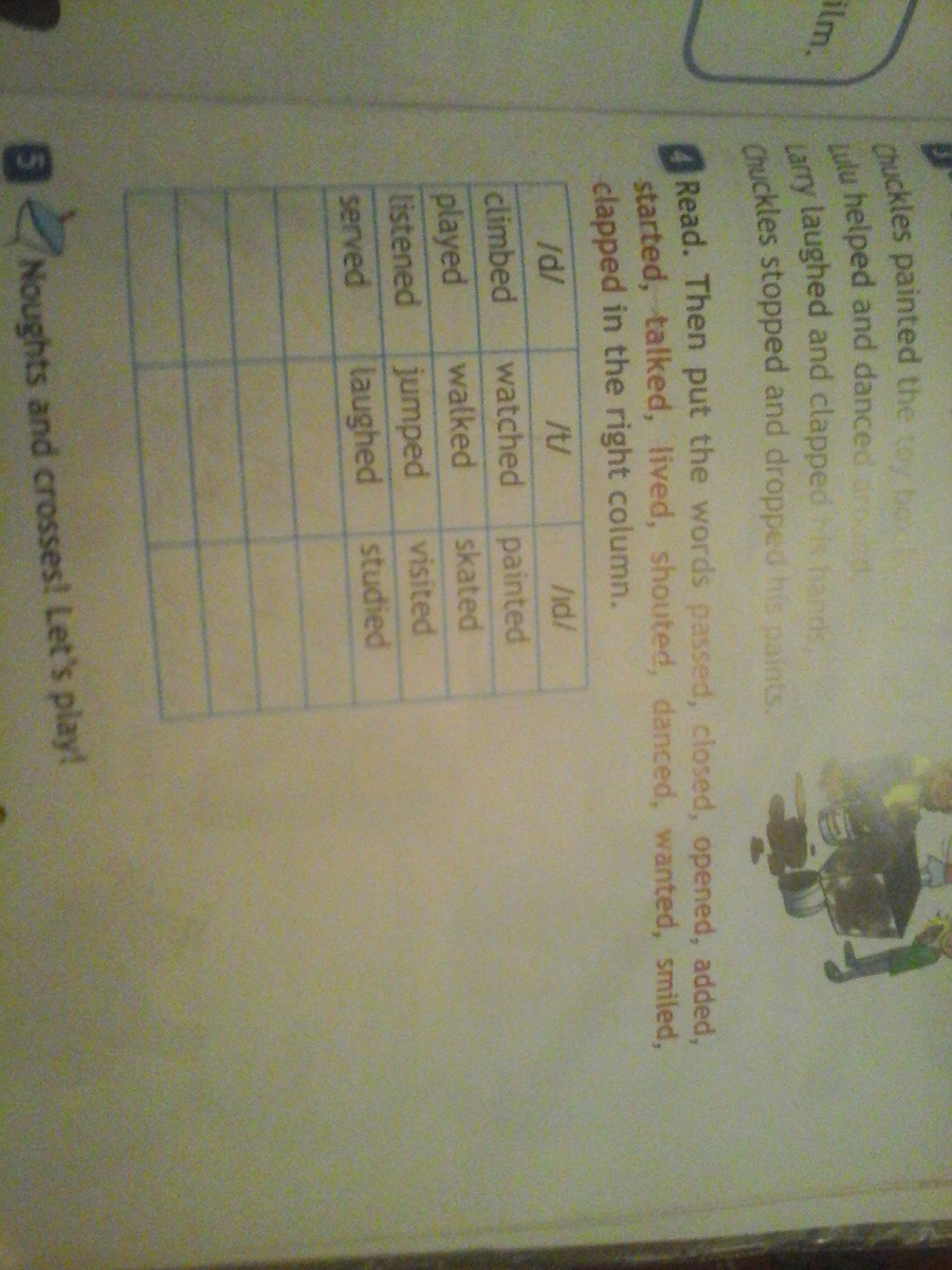 Колонка со звуком "d" - opened, closed, lived, smiled.