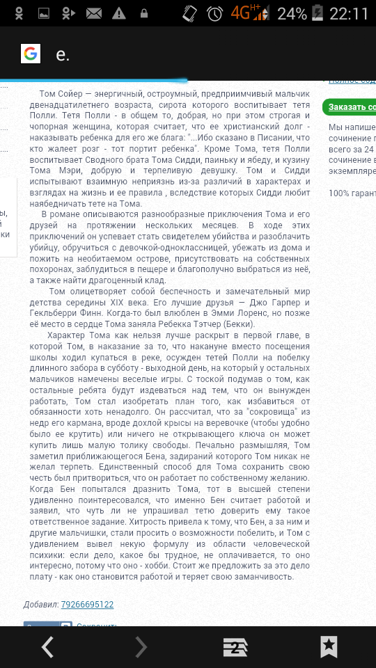 помогите пожалуйста написать характеристику Тома Сойера минимум 15предложений (глава тринадцатая) М.Твен