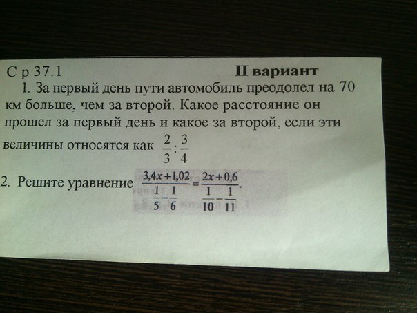 1.Пусть второй путь это x.Тогда первый путь это x+70.