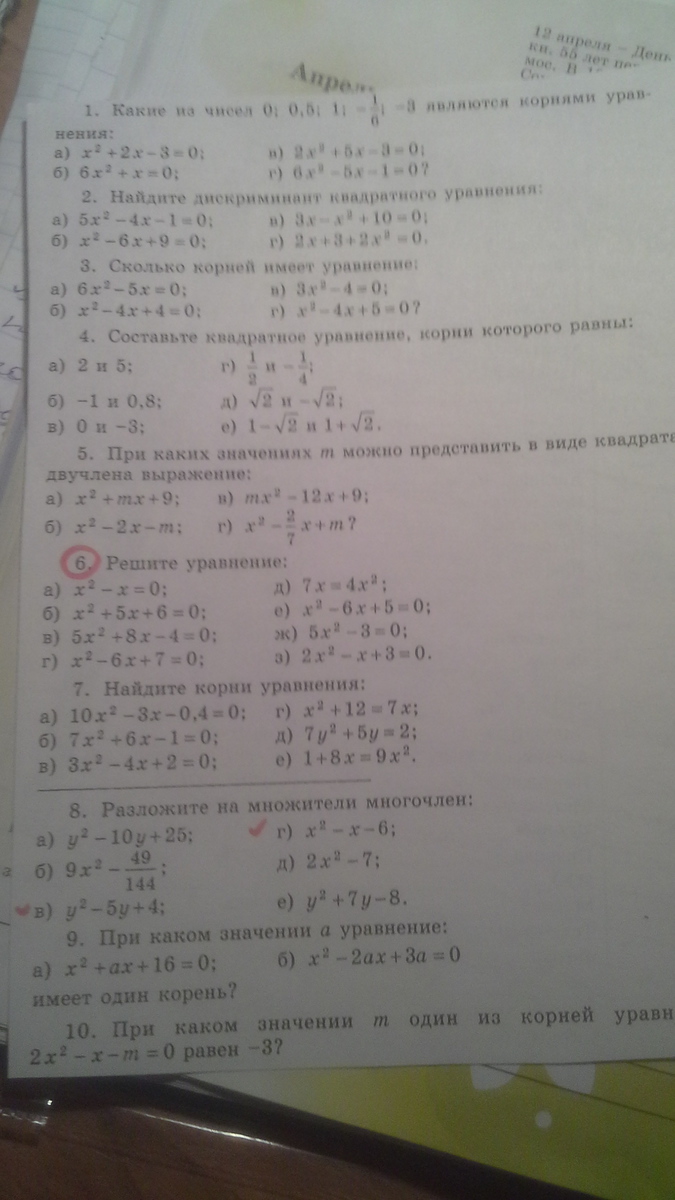6) а) x^2 - x = x(x - 1) = 0; x1 = 0; x2 = 1