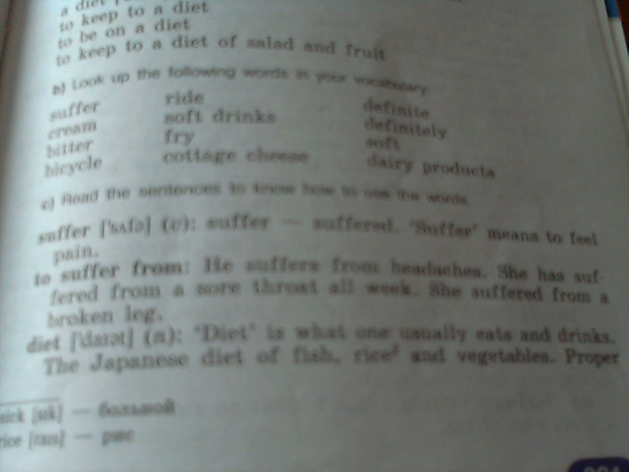 1) СТРАДАТЬ 2) СТРАДАТЬ ОТ ЧЕГО ЛИБО 3)ДИЕТА 4)СИДЕТЬ НА ДИЕТЕ 5)ДЕРЖАТЬ ДИЕТУ 6)ЖАРИТЬ 7)КРЕМ,СЛИВКИ 8)МЯГКИЙ 9)ТВОРОГ 10)МОЛОЧНЫЕ ПРОДУКТЫ 11)ГОРЬКИЙ 12)ОПРЕДЕЛЕННЫЙ,ТОЧНЫЙ 13)ТОЧНО 14)КАТАТЬСЯ(НА ВЕЛОСИПЕДЕ) 15)ВЕЛОСИПЕД 17)ЧАШКА ЧАЯ.