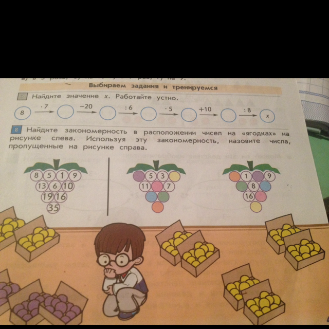 Найдите закономерность в расположении чисел на "ягодах" на рисунке.Назовите числа ,пропущенные на рисунке
