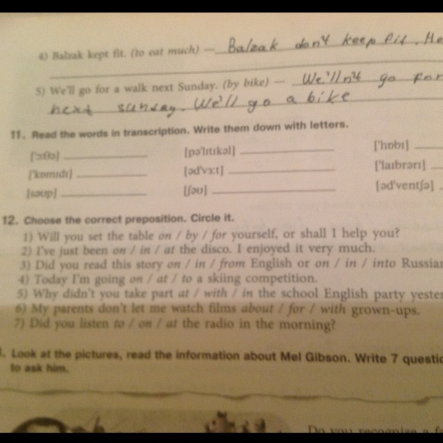 1)BY 2)AT 3)IN, INTO 4)AT/TO 5)IN 6)FOR 7)TO