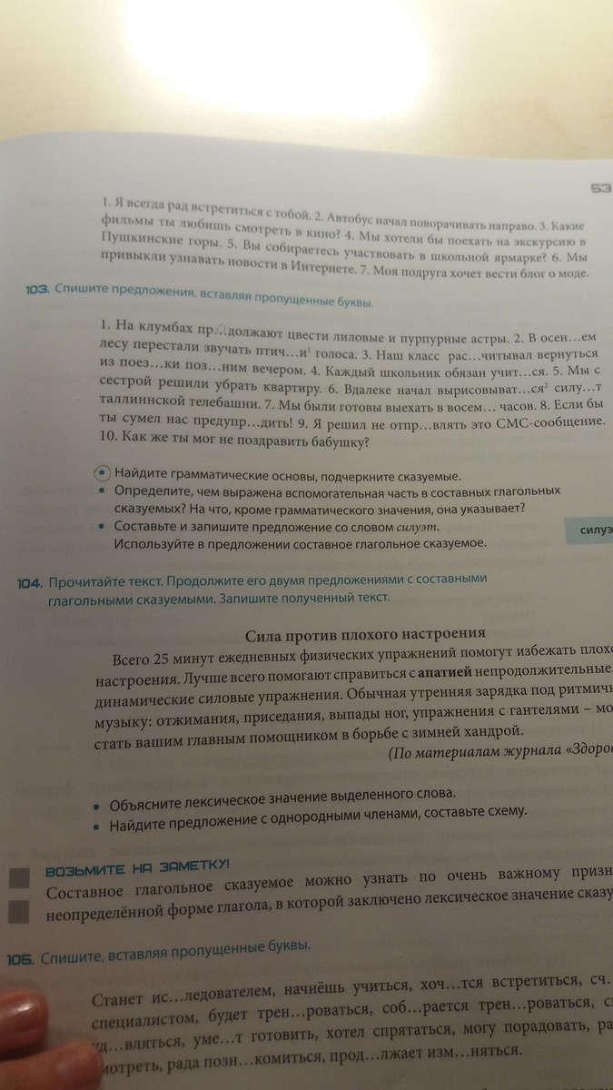 упр 103.Помогите подписать над сказуемыми виды составных сказуемых