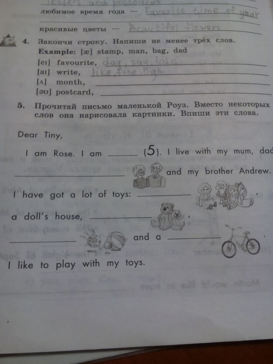 1) five 2) grandparents 3) dolls 4) Teddy bears 5) balls 6) bike