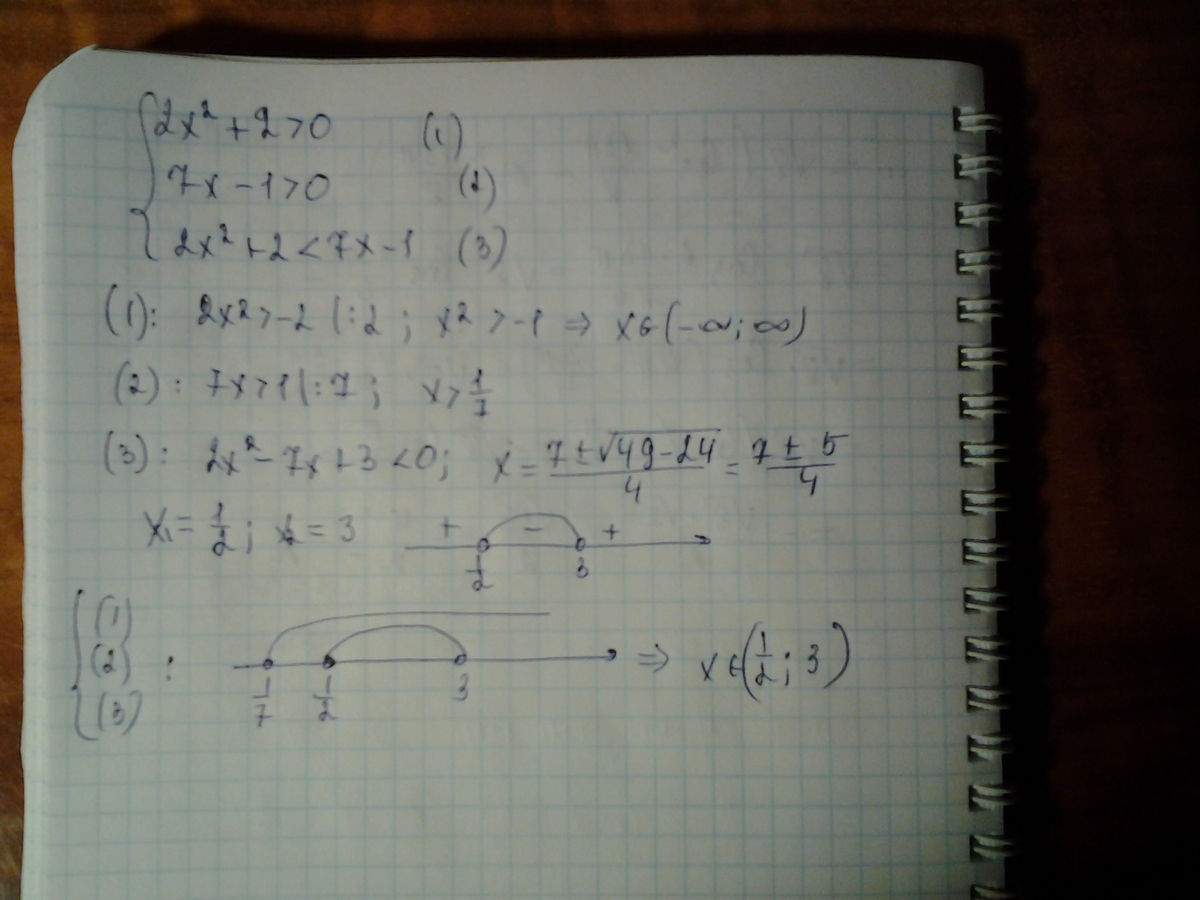 log0,8(2x^2+2)>log0,8(7x-1).решить неравенство