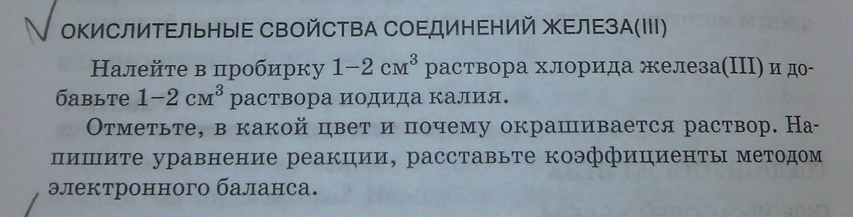 2 FeCl3 + 2KI = 2 FeCl2 + 2 KCl + I2