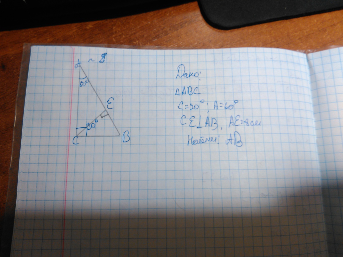Не знаю верно ли. Но ответ может быть 32. Треугольник СЕА: угол ЕСА 30 получается. По свойству АС следовательно 16. Теперь треугольник АВС: угол СВА 30, след по такому же свойству АВ 32