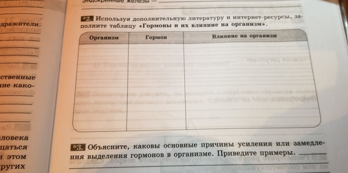Используя дополнительную литературу и интернет-ресурсы, заполните таблицу '' Гормоны и их влияние на организм,,.