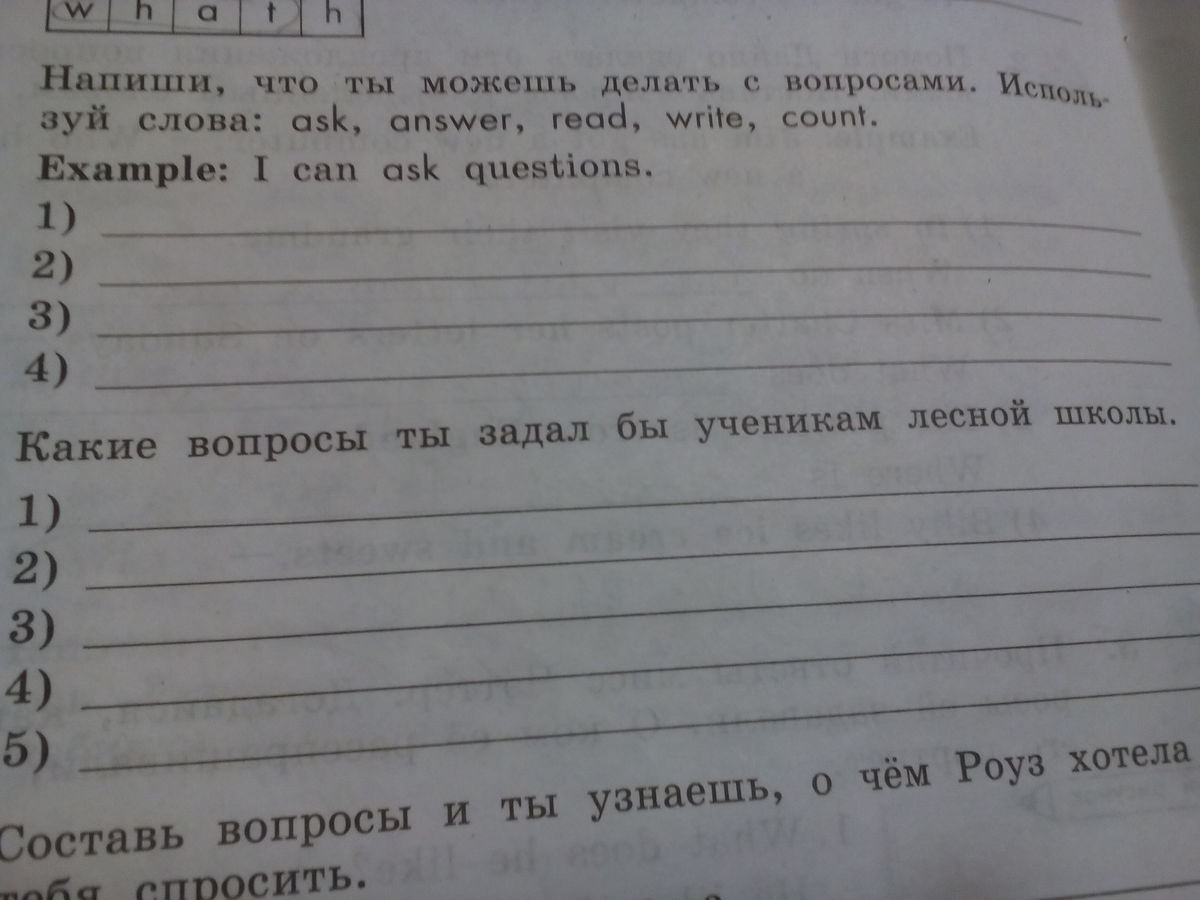 напиши,что ты можешь делать с вопросами.используй слова:ask,answer,read,write,count.