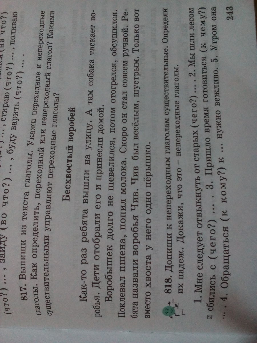 вышли (непереходный) таскает (переходный) отобрали (переходный) принесли (переходный) не шевелился (непереходный) отогрелся (непереходный) обсушился (непереходный) поклевал (переходный) попил (переходный) стал (непереходный) назвали (переходный) был( непереходный)