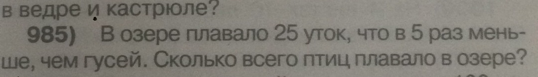 985) Возе-ре плавало 25 уток что в 5 раз жмень чем Сколько всего птиц плавало в озере