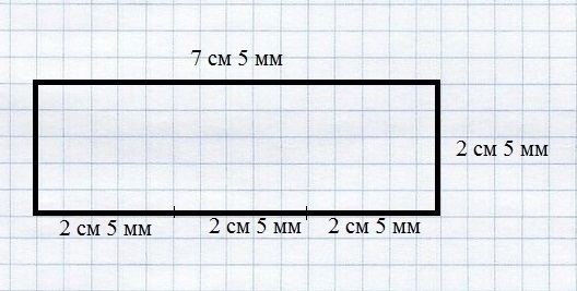 5) 25 мм * 3 = 75 мм = 7 см 5 мм длина прямоугольника