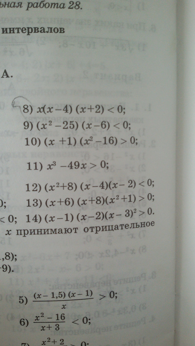 отмечаем все эти точки на числовой прямой,находим в каком промежутке будет ноль,ноль подставляем неравенство вместо икса (если число положительное ,то будет знак плюс,если отрицательная ,то знак миус)где приблизительно будет стоять ноль,став получившиеся знак ,в данном уравнение это знак "+"