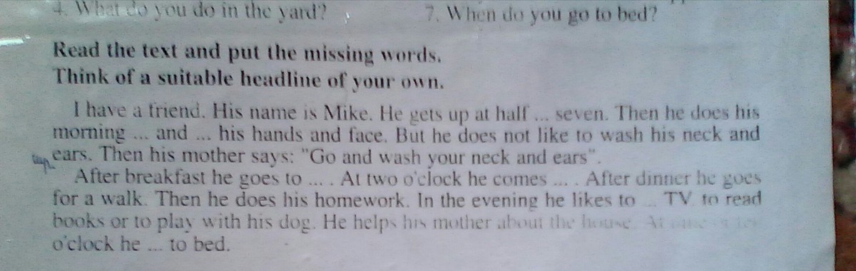 His morning ( exercises) and (washes )hands and face .