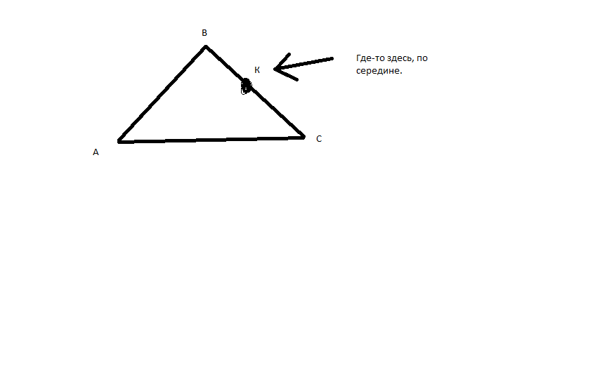 дан треугольник АВС. на стороне ВС этого треугольника постройте точку, равноудаленную от поямых АВ и АС