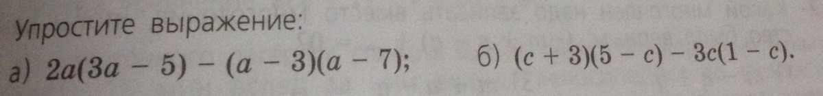 Упростите выражение: 2а(3а-5)-(а-3)(а-7)