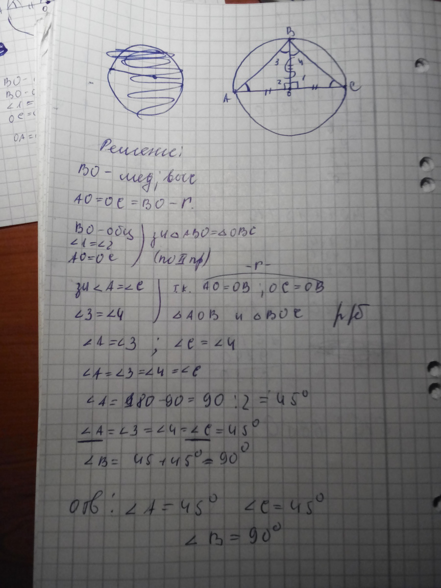 так как был опущен перпендикуляр,и отрезок является биссектриссой,то все боковые углы по 45