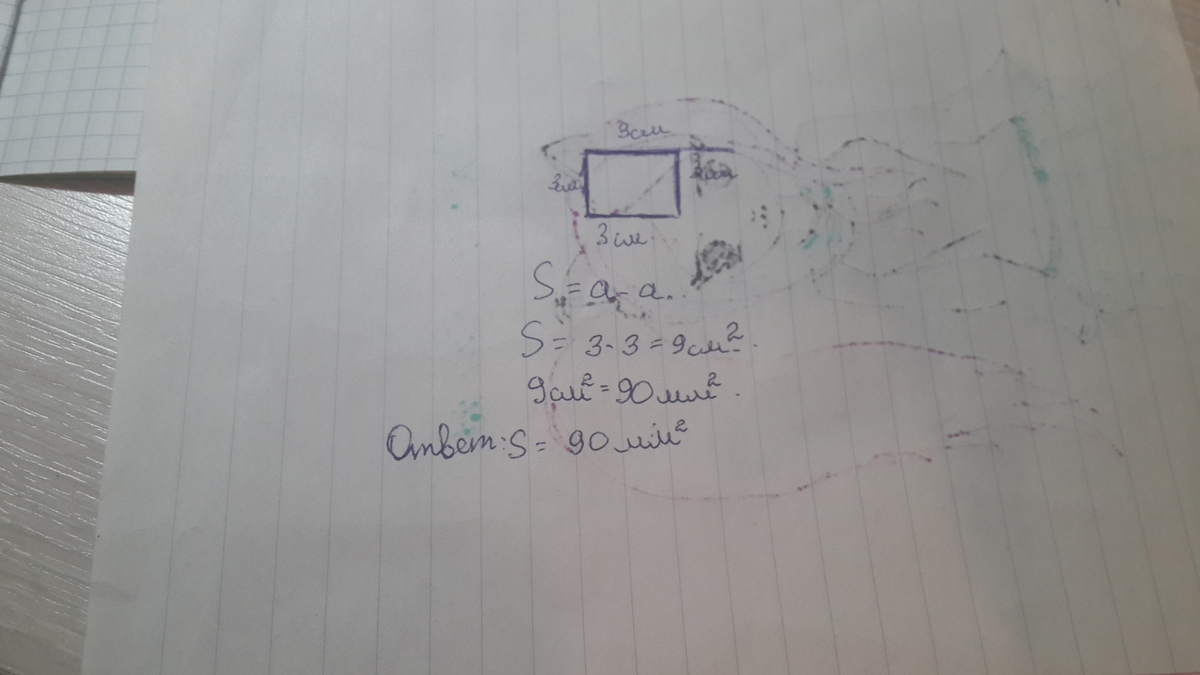 S это обозначение площади. a это сторона квадрата.Мой квадрат начерчен не ровно,поэтому начерти сам,по линейке,решение точно правильное.