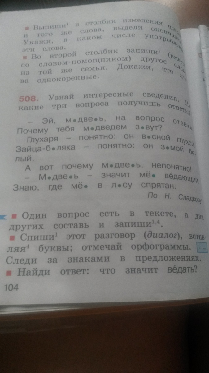 -Медведь - значит мёд ведающий. Знаю,где мёд в лесу спрятан.