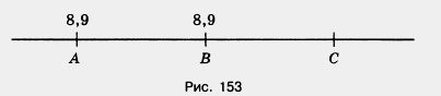 1498. На рисунке 153 АВ = ВС, где А(8,9) и 5(9,5). Найдите координату точки С. Чему равно среднее арифметическое координат точек А и С?