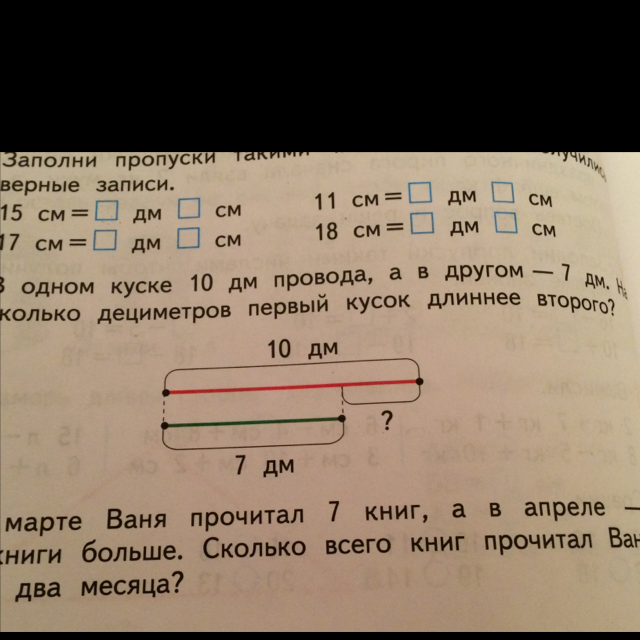 1) 10-7=3 (см)-разница