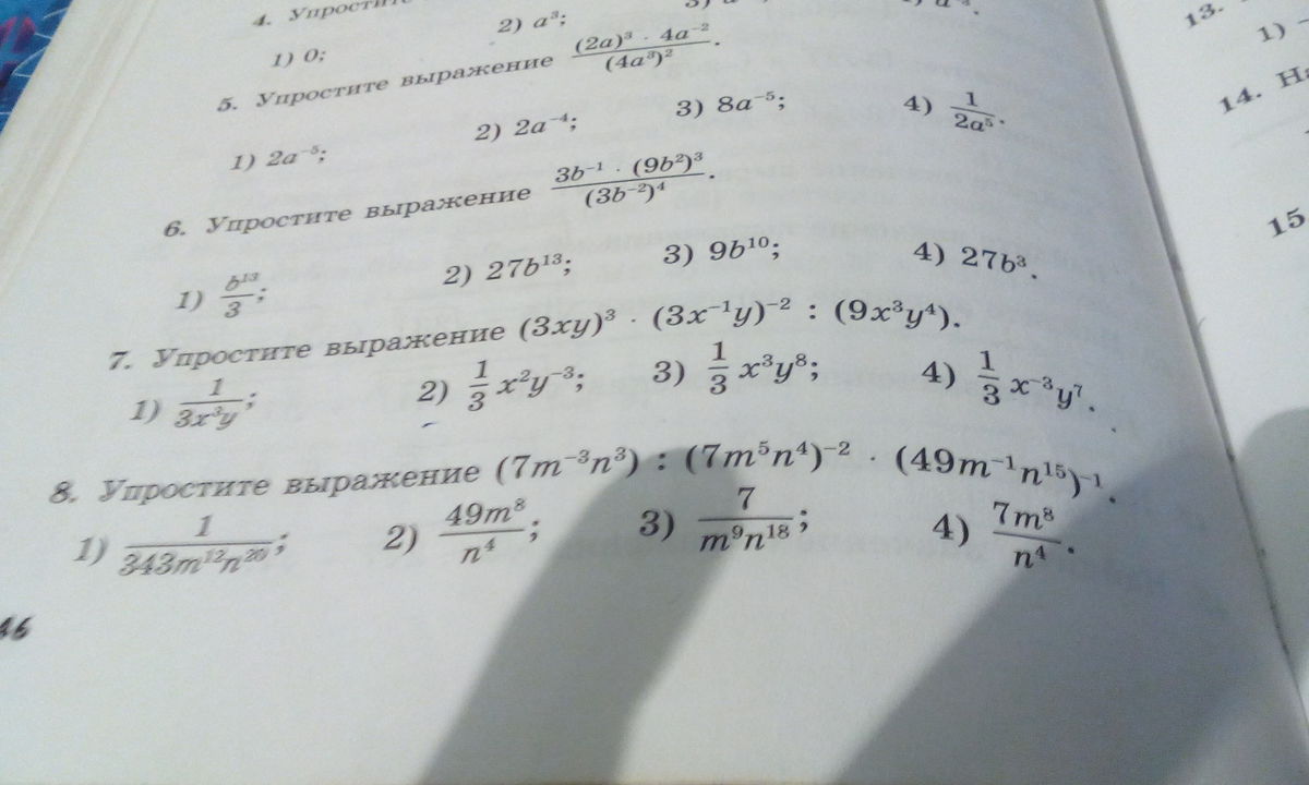 7m⁻³n³÷7⁻²m⁻¹⁰n⁻⁸·7⁻²m¹n⁻¹⁵=7m⁸n⁻⁴ отв 4