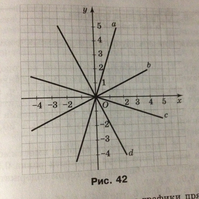 На рисунке 42 изображены графики прямой пропорциональности. Для каждого графика найдите коэффициент пропорциональности Помогите пожалуйста очень признателен буду!!!