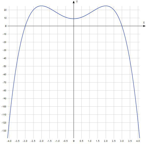 Глобальные максимумы в точках (-2;25) и (2;25)